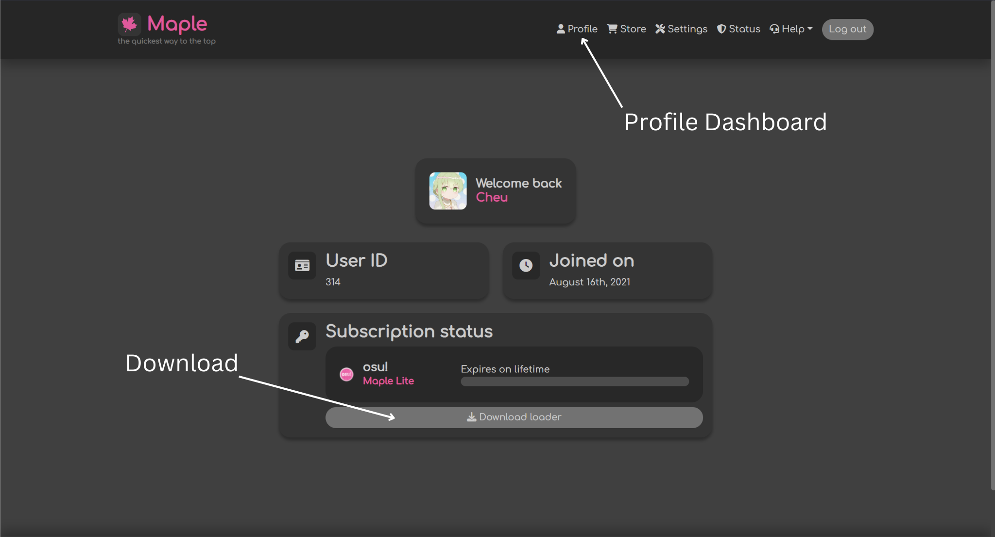 Once you have completed the purchase of Maple.Software, you will see a new active subscription in your [Profile Dashboard](https://maple.software/dashboard/). To install Maple.Software, go to the user dashboard's profile page and click on the ["download loader"](#user-content-fn-1)[^1] button. This action will initiate the download of the Maple.exe file.